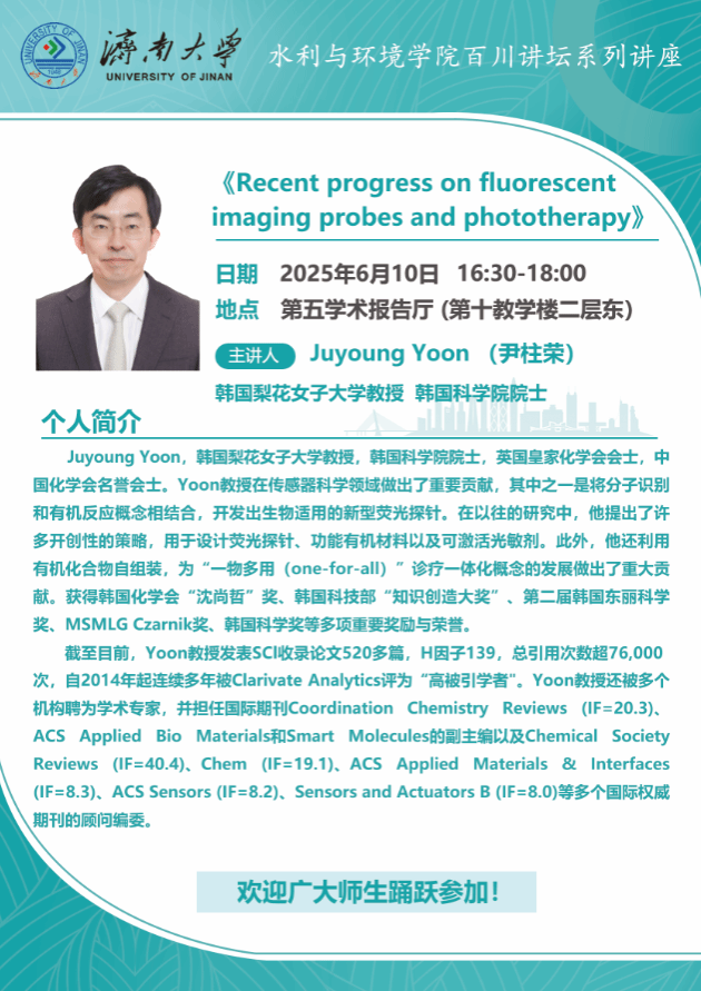 水利与环境学院学术讲座—《Recent progress on fluorescent imaging probes and phototherapy》