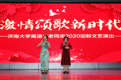通报会结束后举行了老同志迎新文艺演出。老同志们欢聚一堂,载歌载舞喜迎新春,《好日子》、《花儿为什么这样红》、《绣红旗》、《爱我中华》、《我们走在大路上》等曲目唱出了老同志们对新时代美好生活的歌颂和永远跟党走的坚定理想信念;诗文朗诵《善待暮年》、〈济南的冬天》诉说了“有梦人不老”“我们爱济南”的美好情怀;《童年》、《娄山关》、《军港之夜》、《水乡新娘》、《书简舞》等节目表达了对祖国、故乡和亲人的眷恋,整场演出由老同志们自编、自导、自演,展现出永利老同志颂歌新时代,爱国爱校、老有所养、老有所乐的优良传统和良好精神面貌。