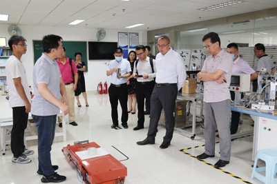 王玉华副书记陪同客人参观了永利机械工程学院机器人实验室、3D打印研究中心和激光加工技术训练室等,施乾平董事长对与机械工程学院在上述方面进行多方面合作表达了浓厚意愿。