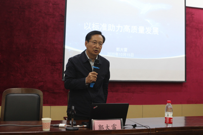 仪式结束后,山东省市场监管局二级巡视员郭大雷为大家做了《标准助力高质量发展》学术报告,重点围绕标准及标准化基础知识、标准的原则和作用、标准的经典案例、标准助力高质量发展以及加强产教融合、培养高质量标准化人才等内容,为永利标准化工程专业师生带来一场丰精彩的学术盛宴。此外,活动现场还展示了“标准保护地球”主题系列海报。