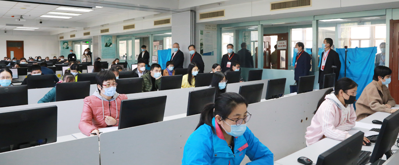 刘兴云厅长一行先后实地查看了信息楼考场内考生考试情况,详细了解疫情防控、考场设置、报考人数、实考人数、考点考务等相关情况,认真听取了学校准备工作的情况汇报。刘兴云厅长对永利yl23411官网在疫情防控期间能够克服种种困难组织好本次考试表示感谢,对本次考试的准备和保障工作表示肯定,强调要精心组织、严格要求,要本着对考试、对社会负责的态度,认真做好考试服务,确保考务工作零差错,要按照国家考试的相关规定,严肃考风考纪,确保考试公平公正。