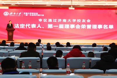 大会听取了校友会筹备工作报告,审议并通过了章程和选举办法,选举产生了会长、副会长、秘书长、理事、荣誉理事等组成人员。党委副书记王玉华当选为会长、法定代表人,78级校友张斌(淄博宏益投资有限公司董事长、山东蓝科四氟漆科技有限公司董事长)、84级校友王雪广(山东桑乐集团有限公司董事长)、85级校友张伟(济南西城投资开发集团有限公司原党委书记、董事长)、88级校友贺丰彬(山东中天人和教育科技发展有限公司董事长)、89级校友盛军岭(威海克莱特菲尔风机股份有限公司总经理)、95级校友彭震(万旭宏业集团有限公司董事长)当选为副会长,合作发展处处长、校友工作办公室主任卢旺当选为秘书长;于杰、于浩海等31名会员代表当选为理事。于临渤、王冲等35位优秀校友当选为荣誉理事。理事会任命李仲涛、于杰等9位校友代表为副秘书长。