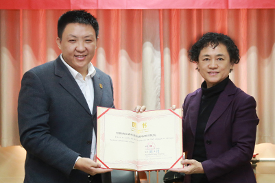仪式上,永利yl23411官网党委副书记张硕秋为山东梅格彤天电气有限公司执行总裁谷青松颁发了顾问教授聘书。