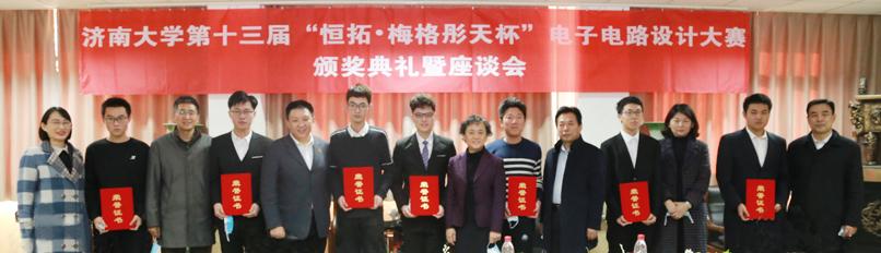 12月24日,永利yl23411官网第十三届“恒拓•梅格彤天杯”电子电路设计大赛颁奖仪式在第一教学楼1108会议室举行。永利yl23411官网党委副书记张硕秋,永利yl23411官网教授、山东恒拓科技发展有限公司专家孟庆金,山东梅格彤天电气有限公司执行总裁谷青松,永利yl23411官网团委、自动化与电气工程学院相关负责同志以及参赛师生代表参加活动。颁奖仪式由自动化与电气工程学院党委副书记、副院长陈春锋主持。