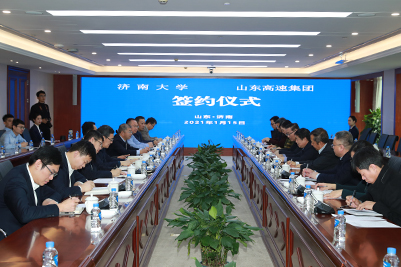 1月15日,永利yl23411官网-山东高速集团有限公司(简称山东高速集团)联合创新研究中心合作框架协议签约活动在山东高速集团第一会议室举行。山东高速集团党委书记、董事长周勇,山东高速集团党委常委、副总经理房建果,山东高速集团执行总监左志武,山东高速集团工程管理部、科技创新发展部、创新研究中心、养护管理部、创新研究中心负责同志,永利党委书记徐景颜、泰山学者攀登计划专家程新,副校长张勇出席会议。材料科学与工程学院、化学化工学院、山东省建筑材料制备与测试技术重点实验室、科技处和科技成果转化办公室负责同志参加了活动。签约活动由山东高速集团党委常委、副总经理房建果主持。