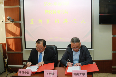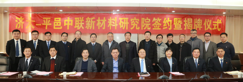 在签约揭牌仪式上,黄加栋处长与李强总经理签订了双方共建济大-平邑中联新材料研究院协议,陈月辉副校长与李强总经理为济大-平邑中联新材料研究院揭牌。