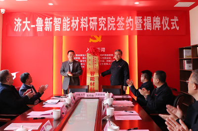 在签约揭牌仪式上,黄加栋处长与鲁新建材公司徐强总经理签订了双方共建“济大-鲁新智能材料研究院”协议,刘宗明副校长与济钢集团苗刚总经理为“济大-鲁新智能材料研究院”揭牌。