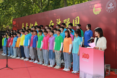 4月28日上午,为迎接建党100周年、庆祝五四青年节,深入推进“学党史、强信念、跟党走”学习教育,激励广大团员青年牢记习近平总书记的嘱托,做到爱国爱民、锤炼品德、勇于创新、实学实干,永利yl23411官网共青团举行“青春向党,奋斗强国”迎接建党100周年示范主题团日活动暨2021年度新发展团员入团仪式。学校党委副书记张硕秋,党委常委、宣传部部长贾海宁,相关职能部门负责同志,各学院党委书记,全体团干部以及青年师生代表500余人参加活动。