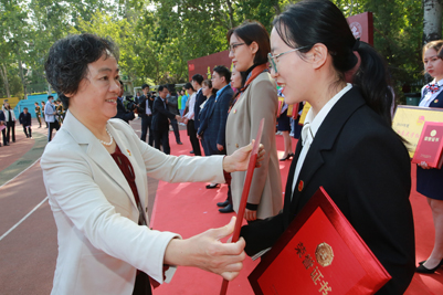 “我志愿加入中国共产主义青年团,坚决拥护中国共产党的领导……”活动现场,在领誓人的带领下,500多名新老团员共同举起右手,面向团旗庄严宣誓、重温入团誓词。一名团员就是一面旗帜,一枚团徽就意味着一份担当。为了唤醒团员身份意识,增强新发展团员的责任感、使命感、归属感,入团仪式还特意设计了优秀团员代表为新发展团员佩戴团徽环节。共青团员身份,既是荣誉,也是责任,有团员的地方就会有团徽,哪里有团员,团徽的影响力就会延伸到哪里。