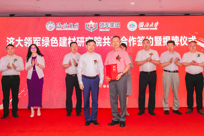 在签约暨揭牌仪式上,刘宗明副校长与郭爽部长为“济大-领军绿色建材研究院”揭牌,李香祖董事长为程新教授颁发了山东领军科技集团专家顾问聘书,黄加栋处长与王灏总经理签署了共建“济大-领军绿色建材研究院”协议。
