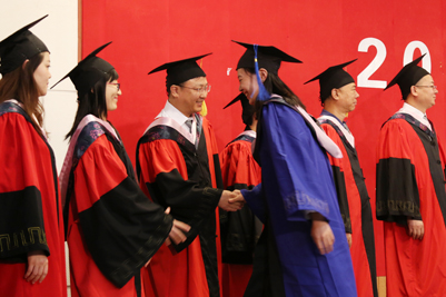 来自各学院的毕业生在师生们的见证下,身着学士服、硕士服、博士服依次上台,校长张士强为他们一一拨穗、合影留念并亲切鼓励毕业生们扬帆远航、逐梦未来。随后,学院领导和毕业生们一一握手,表示祝贺。流苏从帽子右边拨到左边,意味着同学们大学生活圆满结束,身份也由永利yl23411官网的在校生转变为校友,更代表了毕业生们学有所成,可以展翅高飞。