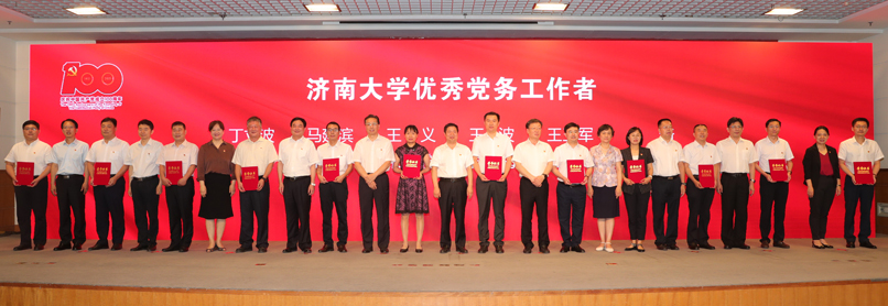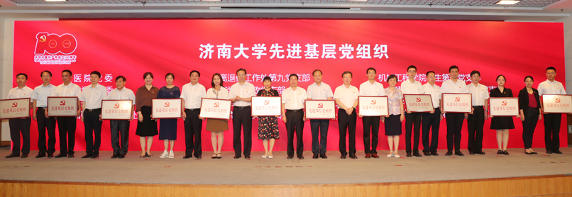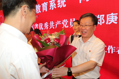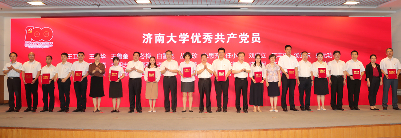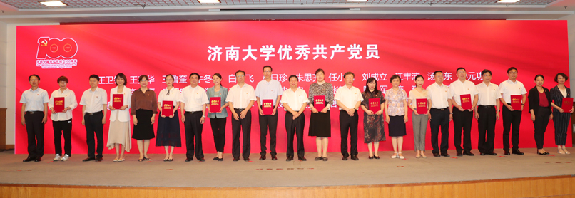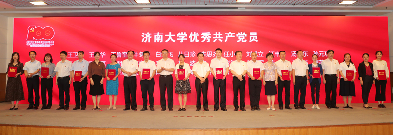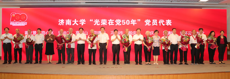 会上,与会人员集体观看了济大党建掠影,共同回顾了学校70多年特别是永利yl23411官网成立以来二十年的发展历程和取得的主要成绩。向老党员代表颁发了“光荣在党50年”纪念章并赠送鲜花,向全省优秀共产党员、全省教育系统“两优一先”赠送了鲜花,对永利yl23411官网优秀共产党员、优秀党务工作者和先进基层党组织进行了表彰。