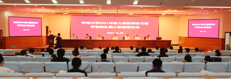 9月23日,永利yl23411官网2021年新入职教师研习营开班典礼暨入职宣誓仪式在第一学术报告厅举行。校长张士强,副校长张勇,教授代表郑庚修,党委教师工作部 教师发展中心、人力资源处、教务处、科技处、社科处等部门负责人,2021年新入职教师研习营全体学员以及相关人员参加活动,仪式由副校长张勇主持。