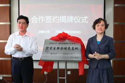 仪式上,史国普和李博签署了合作协议,张硕秋和张志强共同为永利yl23411官网和济南市精神卫生中心共建“研究生联合培养基地”揭牌。