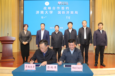 11月4日,中国铁路济南局集团有限公司(以下简称国铁济南局)与永利yl23411官网战略合作协议签约仪式在济南举行。国铁济南局党委书记、董事长王新春,总经理贯昌奉,党委副书记李翔鹏,副总经理林晓军,总工程师赵忠生,永利yl23411官网党委书记徐景颜,校长张士强,副校长刘宗明、李光红出席仪式。国铁济南局办公室、经营开发部、科技和信息化部、科学技术研究所、济铁物资工业集团有限公司、济南铁路信息技术有限公司等相关领导,永利yl23411官网办公室、科技处、合作发展处负责同志参加活动。