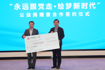 活动现场举行了“永远跟党走•雷神公益行”《中国共产党简史》等图书捐赠仪式,中国光华科技基金会图书捐赠中心主任助理边文聪、青岛雷神科技股份有限公司总经理李艳兵分别代表各自单位向永利yl23411官网捐赠图书;随后举行“永远跟党走•绘梦新时代”山东领军科技集团公益捐赠暨合作签约仪式,永利yl23411官网合作发展处处长卢旺、山东领军科技集团总裁李雪燕分别代表双方签署战略合作协议,李香祖董事长代表山东领军科技集团向永利yl23411官网教育发展基金会捐赠200万元。永利yl23411官网党委书记徐景颜为捐赠嘉宾边文聪主任、李艳兵总经理、李香祖董事长分别颁发了捐赠证书和纪念奖杯。