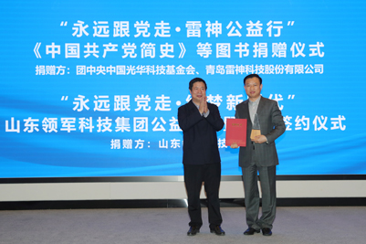 11月19日,中国光华科技基金会、青岛雷神科技股份有限公司、山东领军科技集团于永利yl23411官网开展捐赠和合作签约活动。中国光华科技基金会、青岛雷神科技股份有限公司向永利yl23411官网捐赠100万元码洋《中国共产党简史》等各类图书,山东领军科技集团向永利yl23411官网教育发展基金会捐赠人民币200万元,用于支持永利yl23411官网教育事业发展。