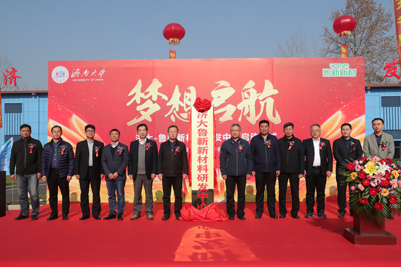 在揭牌仪式上,苗刚总经理与张士强校长为“济大-鲁新新材料研发中心”揭牌。