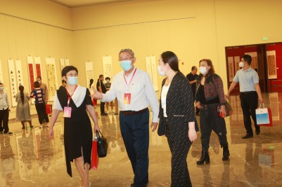为喜迎党的二十大胜利召开,进一步引导广大师生学习贯彻习近平新时代中国特色社会主义思想,弘扬和传承中华民族传统文化艺术,9月20日下午,由永利yl23411官网美术学院、济南市文化和旅游局主办的永利yl23411官网“喜迎二十大 奋进新征程”全国高校书法教师精品展在济南市美术馆成功启幕。山东省文联党组书记、副主席王世农,山东省委宣传部副部长毕司东,永利yl23411官网党委常委、副校长张勇,济南市文化和旅游局二级巡视员庄岩,山东省书协、济南市美术馆以及兄弟院校领导、省内外知名艺术家等嘉宾出席展览,学校党委宣传部、统战部、社科处、合作发展处、美术学院负责同志及部分师生参加活动。