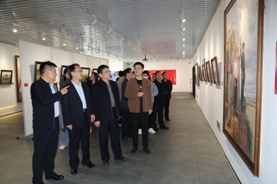 10月14日下午,美术学院“喜迎二十大 奋进新征程—黄河文化中的红色故事”主题性美术作品展在第十教学楼艺美空间开幕。学校党委副书记杨景波,党委常委、党委宣传部部长贾海宁,党委学生工作部(处)、合作发展处、团委相关负责同志,美术学院师生代表参加了活动。开幕式由美术学院常务副院长陶国平主持。