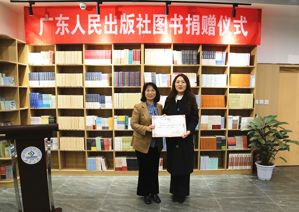 广东人民出版社为支持永利教育教学工作,向永利捐赠了总计人民币10万元码洋的图书,图书馆馆长王爱国代表学校接受了赠书,此次捐赠的书籍种类繁多、质量优良,其中包括《廣东文徵》《葛剑雄文集》《清车王府藏戏曲全编》等一批优质的人文社科图书。王霞向广东人民出版社表达了衷心的感谢,并向王庆芳社长颁发了捐赠证书和纪念品。