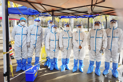 连日来,医护人员按照严谨的核酸采样流程,以较高的专业素养,默契协作,有条不紊,每天高效有序完成3.8万人次的核酸采样工作。隔离服、口罩、手套、鞋套、防护面屏,这些装备把他们包裹得严严实实,虽是初冬,但高强度的一天下来,他们的汗水早已湿透衣服,戴着手套的双手也早已发白。在这场没有硝烟的战斗中,医护人员们冒着凛冽的寒风,披着满天的繁星,奔赴在一次次的核酸筛查岗位上……简单的流程,不变的专注,每一次安全健康的检测背后都是他们的任劳任怨,辛勤付出。
