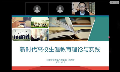 北京师范大学心理学部党委书记、博士生导师乔志宏教授作《新时代高校生涯教育理论与实践》专题报告。报告基于中华民族伟大复兴战略全局和世界百年未有之大变局的新时代历史背景,剖析了新时代职业世界的特点,提出贯彻落实党的二十大精神,培养战略人才的新时代生涯教育的目标,结合学生身心特征和当前生涯教育存在的问题,提出了基于社会认知生涯理论和生涯建构理论的生涯教育实践和新时代生涯教育体系。北京大学学生心理健康教育与咨询中心副主任庄明科作《生涯咨询常见议题的解决之道》专题报告。报告介绍了职业决策的概念和分类,讲述了“测评、卡牌、故事”三种增进自我认知的方法,结合工作实践分享了科学求职指导,提升生涯行动力的建议,为生涯咨询实务提供了新思路和新方法。