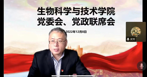 12月8日上午,学校党委常委、副校长黄加栋出席指导生物科学与技术学院党委会和党政联席会,会议以线上的方式进行,生物科学与技术学院全体班子成员参加会议,各党支部书记列席会议。会议由生物科学与技术学院党委书记孙翔玲主持。