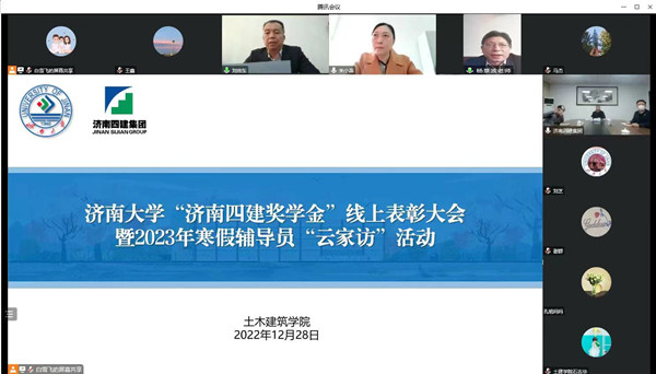 12月28日,学校党委副书记杨景波参加土木建筑学院“济南四建奖学金”线上表彰大会暨2023年寒假辅导员“云家访”活动。获奖学生代表对济南四建集团的鼓励和永利yl23411官网的培养表示衷心的感谢,“在今后的学习生活中,我将明确目标、端正态度,常怀感恩之心、珍惜之心、拼搏之心,为祖国基础设施建设贡献自己的力量。”“感谢永利yl23411官网,感谢济南四建集团,作为学生家长,我们会全力配合学校营造良好的家庭氛围并做好孩子的教育和管理工作。”小陈同学的母亲在发言中说到。济南四建(集团)有限责任公司董事长、党委书记李力表示,近年来永利yl23411官网与济南四建(集团)有限责任公司保持着密切合作,先后有数百名济大学子加盟集团,其中有数十名已走向各层领导岗位,成为推动集团快速发展的中流砥柱。杨景波向一直以来关心和支持学校发展的济南四建(集团)有限责任公司表示感谢,希望同学们能常怀感恩之心、常念相助之人,勤奋学习、锐意进取,早日成为国家建设的栋梁之才,用自己的实际行动回馈社会、回报母校和家庭。