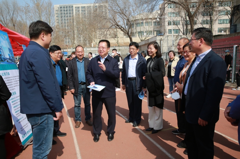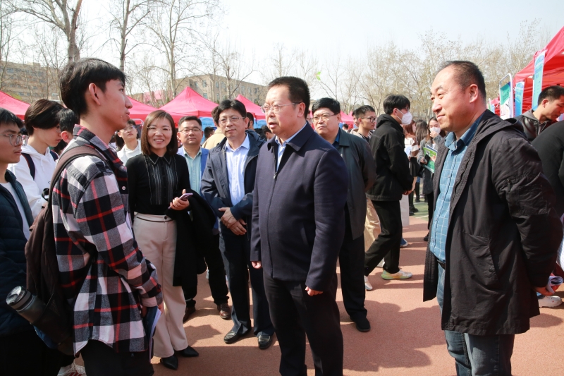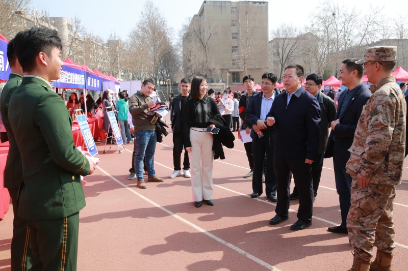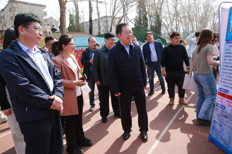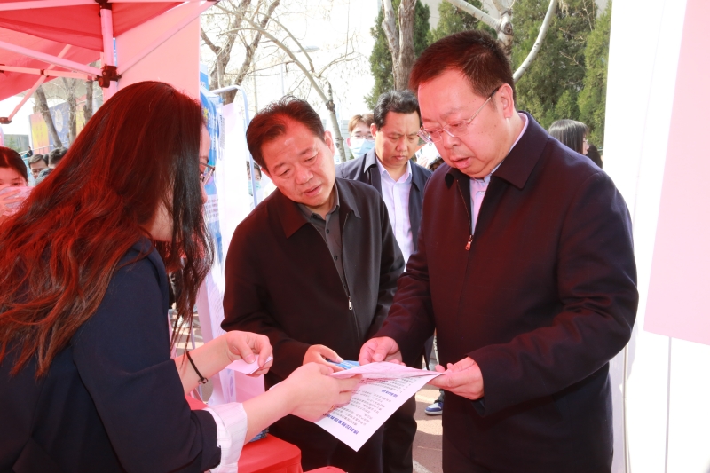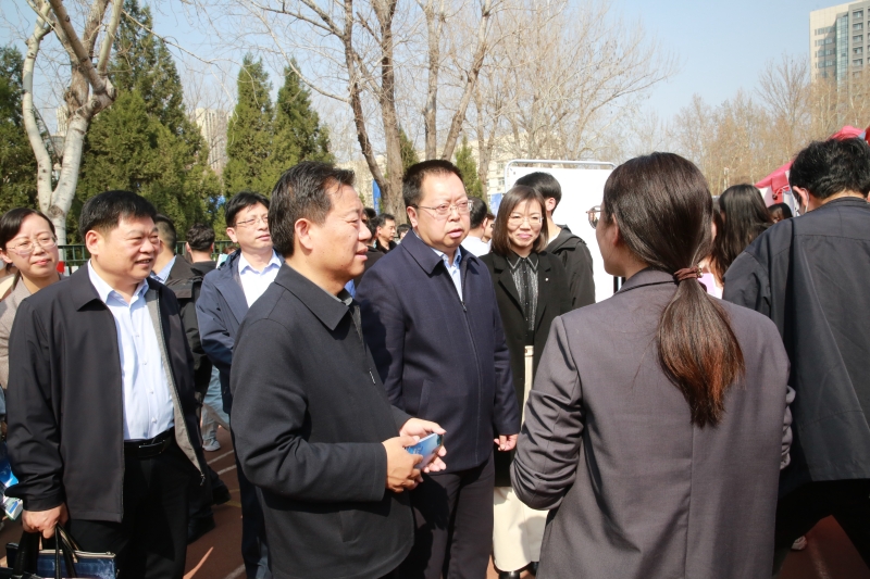 济南市委组织部副部长、市人力资源和社会保障局局长宁延学,市人力资源和社会保障局党组成员、市公共就业服务中心主任王振群,市中区副区长张源,永利yl23411官网校长刘宗明、党委副书记杨景波等来到招聘会现场,在展位前与用人单位、求职学生进行交流。