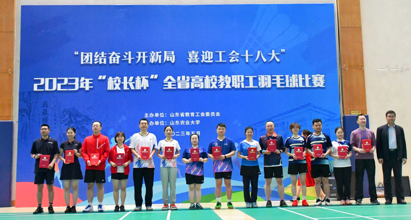 5月8日至12日,山东省教育工会主办的2023年“校长杯”全省高校教职工羽毛球比赛在山东农业大学体育馆举行,此次比赛共有来自全省教育系统75支代表队700多人参赛。永利党委副书记查玉喜,副校长王霞代表学校组队参加比赛。