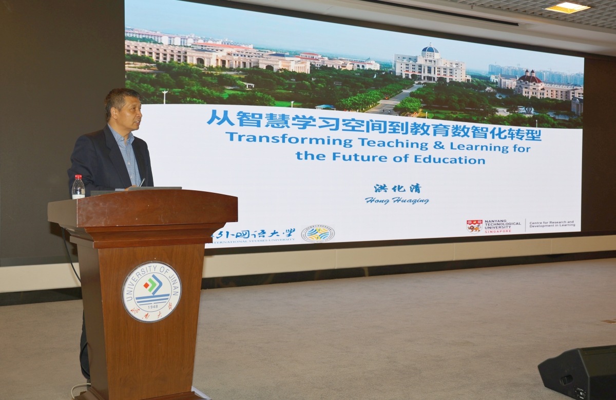 随后,洪化清教授在学校第一学术报告厅为永利教师作了题为“从智慧学习空间到教育数智化转型”的专题报告。洪化清教授以新加坡南洋理工大学的历史沿革和基本校情为例,阐述了国际化的教学理念变革和教学方法选择的重要性,基于自身重大项目及教学研究工作经历,介绍如何运用技术手段促进“教和学”发生变化。他认为,新型学习生态系统的构建需要从教学理念、信息技术、学习空间等三个方面进行改革研究和总体设计,学校应该在大数据学习分析的基础上建立真正以学习者为中心的教学新模式,帮助学生实现自主式、个性化的学习模式转变,从而做到以学习的发生和学生的发展为中心,推动“教和学”的范式转变。为了让教师们更形象地体会到技术手段在教学中的应用,洪化清教授具体阐释了南洋理工大学课堂粘性分析、课堂情感自动分析的操作方法,多角度向教师们展示了如何利用人工智能和大数据学习分析技术,捕捉学生学习过程数据,推进教育教学创新和优质学习发展。