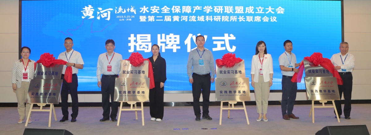 开幕式上,刘宗明、袁成金、韩霜景、段海山、范荣豪、吕家亮、李伟华、马亮、刘玉皎、陈海山等领导共同为黄河流域水安全保障产学研联盟成立揭幕。