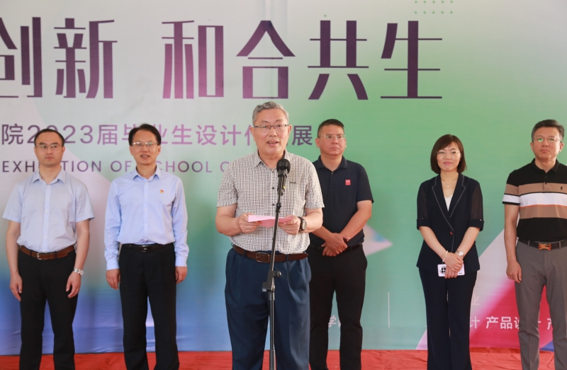 设计学院副院长杨海波首先向学有所成、取得丰硕成果的同学们表示热烈的祝贺并致开幕词。他肯定了毕业生们求学生涯的付出和努力,向所有辛勤付出的教师和导师们致以最诚挚的感谢。他以“无界创新·和合共生”为题,希望学院师生将艺术创作与服务美好生活有机耦合,以精美设计与区域经济社会发展同频共振,将艺术与科技融合共生,紧扣社会需求,回应时代关切。