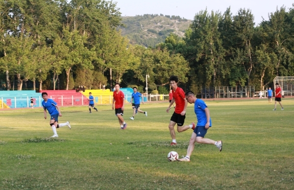 仲夏暑盛,万物并秀,骄阳般的六月迎来了一年一度的毕业季。为促进师生间交流,追忆青葱岁月,6月13日,材料科学与工程学院在北苑操场举办了第38届暨2023年“齐鲁云商”毕业杯足球赛。校长刘宗明,党委常委、宣传部部长贾海宁,优秀校友、2007届毕业生、齐鲁云商总经理魏本磊,合作发展处、学院相关负责同志,部分在材料科学与工程学院学习和工作过的老师出席并观看比赛。