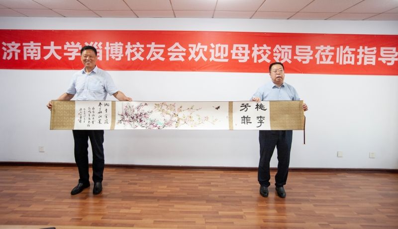 刘宗明代表学校向淄博校友会赠送了书画作品,淄博校友会向母校赠送了纪念瓷盘。座谈会后,近百名淄博校友进行了进一步交流,共叙校友情谊、共谋事业发展。