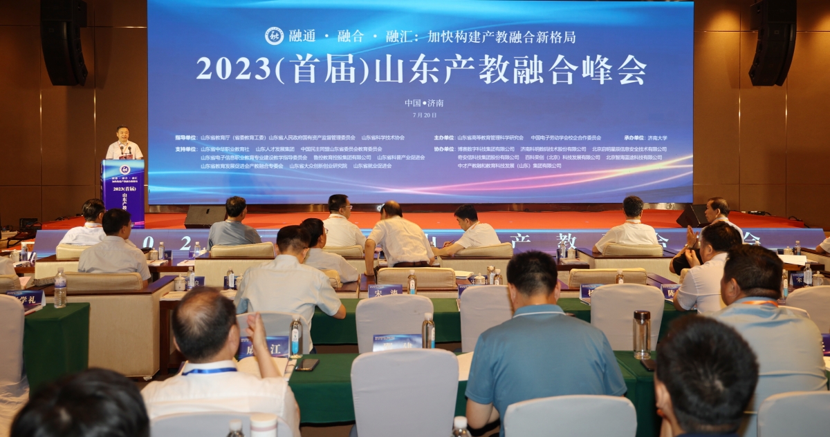 7月20日,由山东省高等教育管理科学研究会、中国电子劳动学会校企合作委员会联合主办,永利yl23411官网承办的“首届山东产教融合峰会”在济南召开。山东省委教育工委副书记、省教育厅副厅长邢顺峰,山东省人民政府国有资产监督管理委员会省管企业监事会主席韩斌,山东省科学技术协会二级巡视员尹希友,山东省人民政府参事、民进中央委员郭永军,中国民主同盟山东省委员会专职副主委王睿,山东省发展和改革委员会社会发展处四级调研员李捷良,山东省中华职教社秘书处三级调研员王文利,永利yl23411官网校长刘宗明、党委副书记查玉喜、副校长王霞出席峰会。来自全国各高校、职业院校、科研院所、行业企业的代表600多人参加了此次峰会。大会开幕式由查玉喜主持。