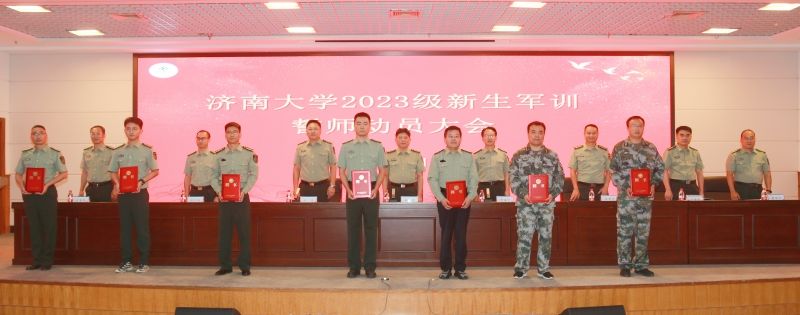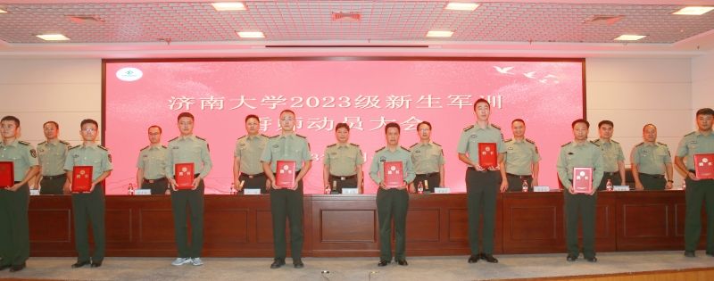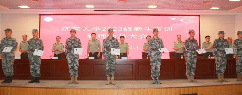 会上,贾海宁宣读了各军训团编制命令和军事理论课教师聘用名单,与会领导为军事理论课教师和承训教官分别颁发了聘书和教官资格证书。学校军训教导大队大队长、2021年退役士兵、体育学院学生程建峰代表全体承训教官发言,承诺将科学施训、严格管理,严格按照条令条例带训,以良好的形象使受训人员学有榜样,练有标杆,树立“文明之师”的良好形象,确保训练任务高标准、高质量完成。军事理论课教师代表、体育学院辅导员王召镇在发言中表示,全体军事理论课教师将始终不辱使命,全身心投入教育事业,不懈努力提高教学水平,传承军事智慧,传授军事知识,培养学生坚韧不拔的意志和创新思维,培养出更多优秀的军事理论人才,为实现国防强大和社会进步贡献我们的智慧和汗水。