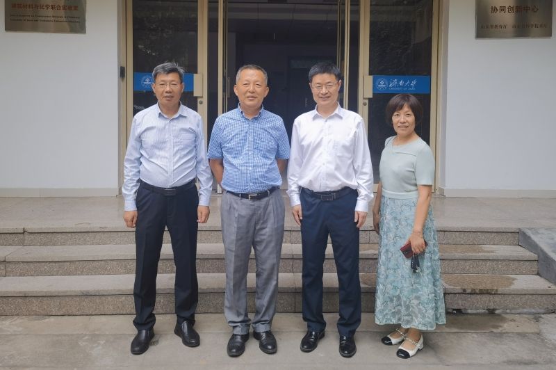来访期间,朱兵拜访了求学期间89级32班班主任王建荣老师,共同回顾了学生时期的师生往事,回忆同窗情谊,谈及各位同学的发展和现状,再次感谢母校的培养,期待校友继续在各个行业内发光发热。随后,朱兵拜访了永利山东省建筑材料制备与测试技术重点实验室程新教授,感谢求学期间老师的培养和教诲,探讨了建筑材料行业的发展方向和规划,并就实验室发展相关特色方向提出建议,表示将继续为母校的发展贡献力量,期待与母校共同书写更加辉煌的建材发展新篇章。