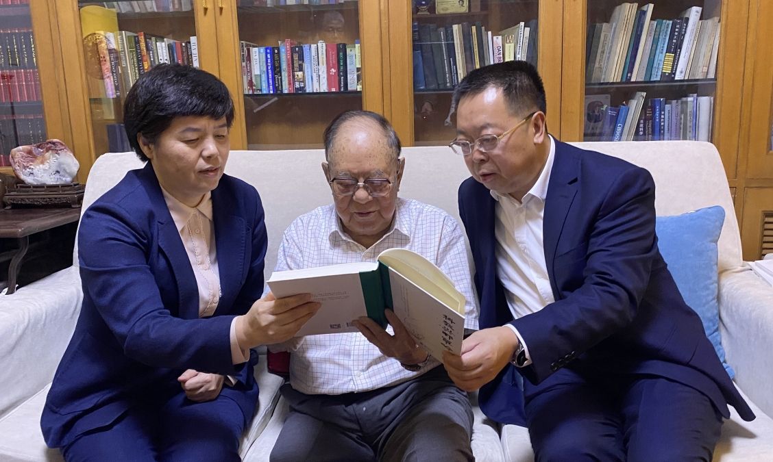 92岁高龄的宋健院士精神矍铄、思维敏捷。在听取学校领导的汇报后,宋健院士非常高兴,对学校取得的成绩充分肯定,并表示将持续关注、全力支持学校发展。宋健院士深情回顾了在永利yl23411官网的求学时光和难忘岁月。针对学校高质量发展,宋健院士特别指出,学校要积极引进海内外高层次人才,充分发挥学校材料科学等传统学科优势,瞄准世界科技前沿,服务国家战略需求,针对超导陶瓷、凝聚态物理等科学领域,大力开展材料和化工等学科领域的应用研究、物理等学科领域的基础科学研究,推动学校办学水平进一步提高。宋健院士将自己的专著《科教兴邦草吟》赠送给学校,为学校送上祝福。