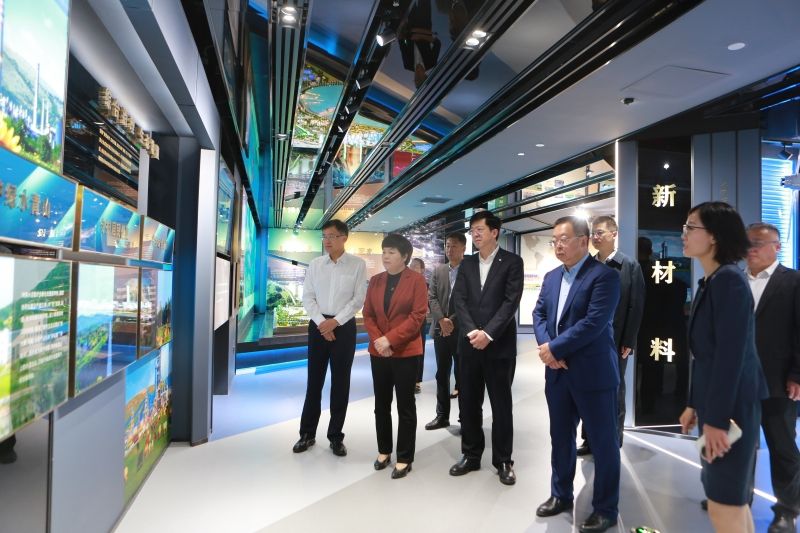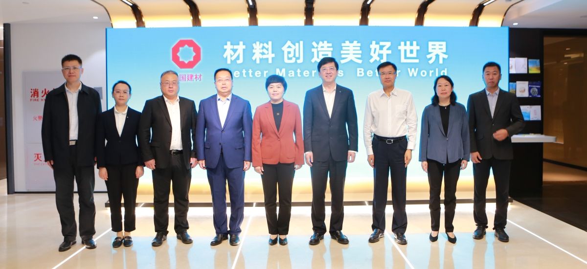 在郅晓、余明清等陪同下,刘春华一行参观了中国建材集团展馆,深入了解了中国建材集团的发展历程、产业结构以及科研创新等情况。