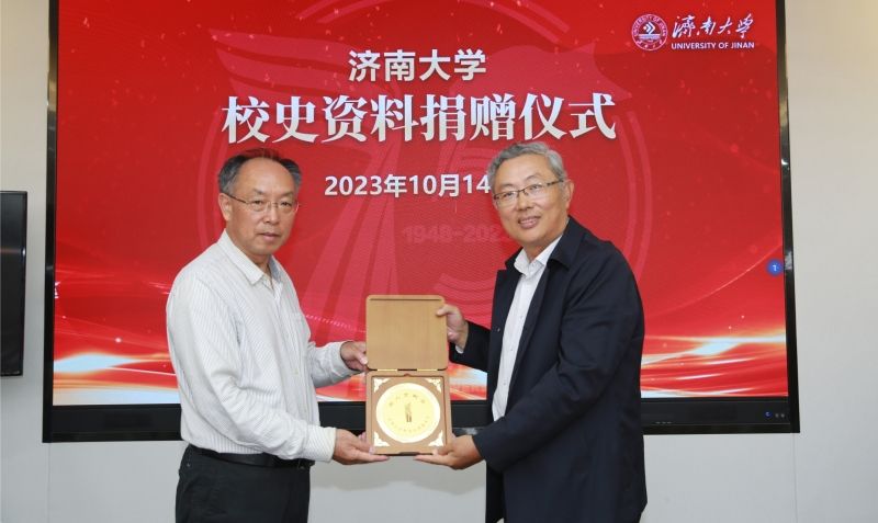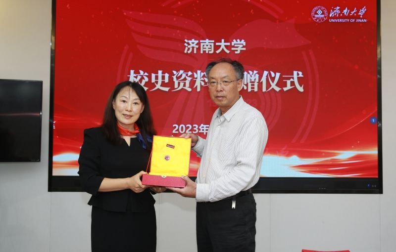 仪式上,毕叶校友介绍了这次捐赠物品的基本情况,深情回忆了父母和自己在济大的工作经历以及生活点滴。毕叶校友代表家人向永利yl23411官网无偿捐赠其父亲毕训、母亲孙黛在学校发展早期工作时使用过的部分实物和活动照片,包括华东军政委员会工业部山东工业干部学校的早期校徽、手稿、证书、奖状在内的珍贵文物30余件。
