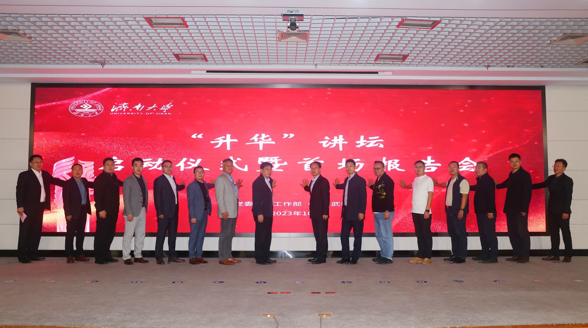 仪式上,杨景波代表学校向各位校友的积极参与和大力支持表示衷心的感谢。他指出,学校扎根中国大地办大学,推动人才培养、科学研究、社会服务、文化传承与创新等各项事业高质量发展,取得了一系列标志性成果和突破性进展,培养了一大批扎根基层、服务社会的优秀人才,学生思想政治工作不断取得新成效、获得新突破、实现新飞跃。他表示,学校的发展离不开广大校友,希望通过“升华”讲坛这个桥梁和纽带,打造学校与校友深度融合的“协同育人共同体”,让校友们在经历万水千山、感悟沧海桑田之后重新回到母校,为学弟学妹们的思想做引导、成长做指导,也希望越来越多的校友能够参与学校的人才培养工作,共同传承济大文化,接续济大精神。