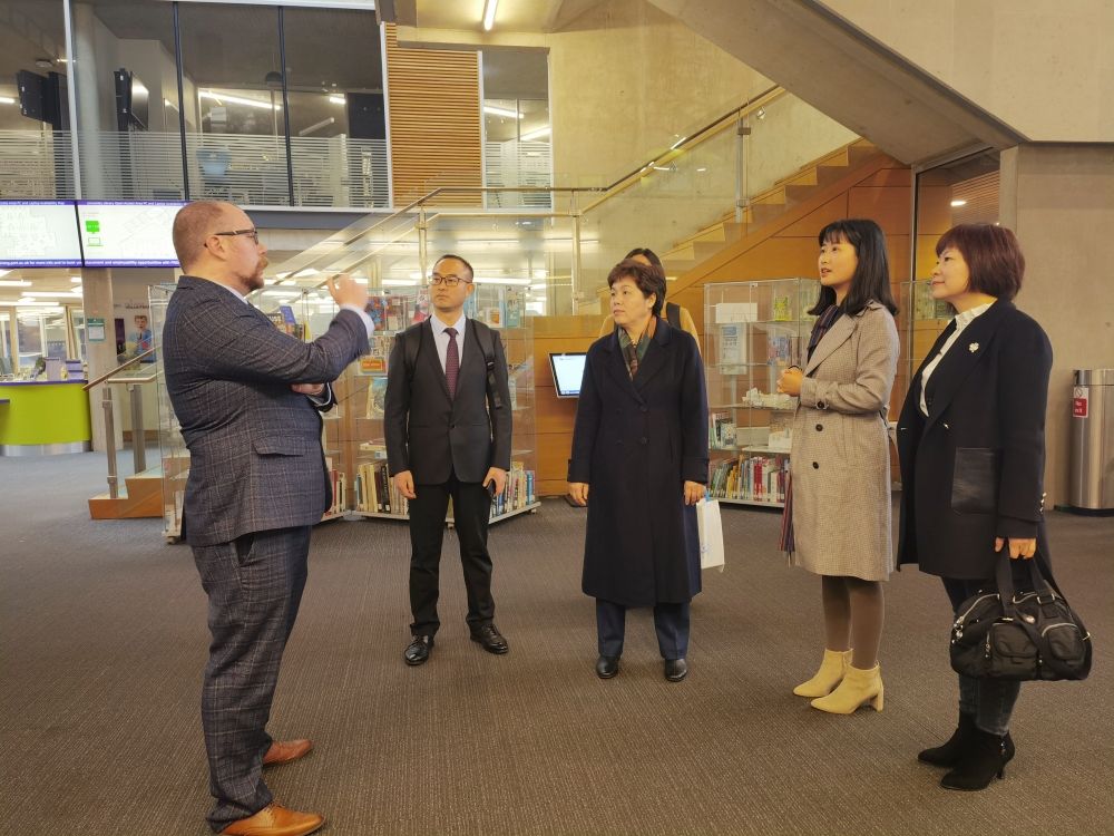 会谈结束后,代表团在副校长丹·安德森(Dawn Anderson)陪同下参观了学校商学院、学生服务中心、图书馆等。
