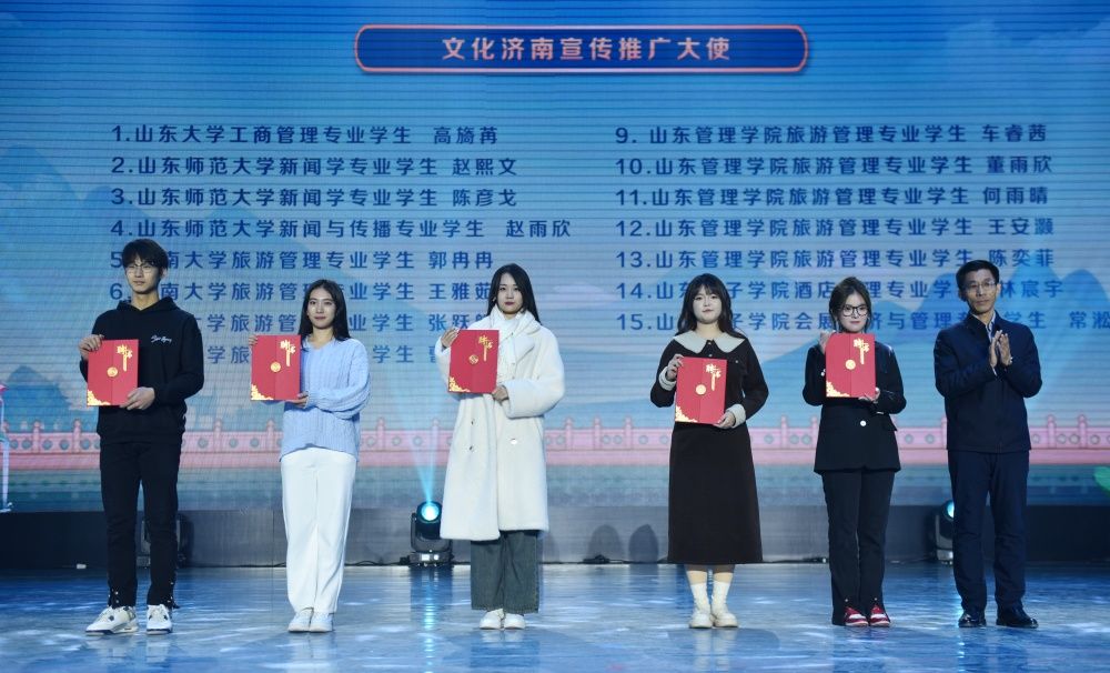 同时,活动还进行了“文化济南宣传推广联盟” “Z世代济南说”短视频大赛等系列颁奖环节。永利yl23411官网获评大学生读城计划优秀组织奖,文化和旅游学院获评“Z世代济南说”短视频大赛优秀组织奖,学校4名学生获聘文化济南宣传推广大使。