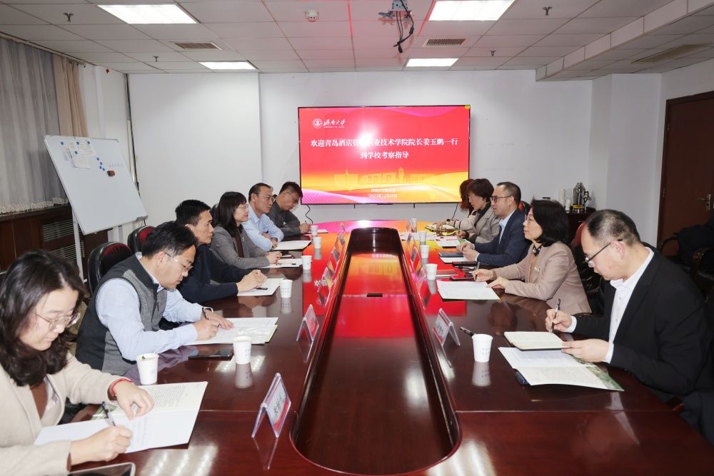12月25日,青岛酒店管理职业技术学院姜玉鹏校长一行来校,就烹饪与营养教育专业“3+2”对口贯通分段培养工作进行交流座谈。永利yl23411官网党委常委、副校长王霞会见客人,教务处招生办公室、文化和旅游学院等单位负责人参加座谈。