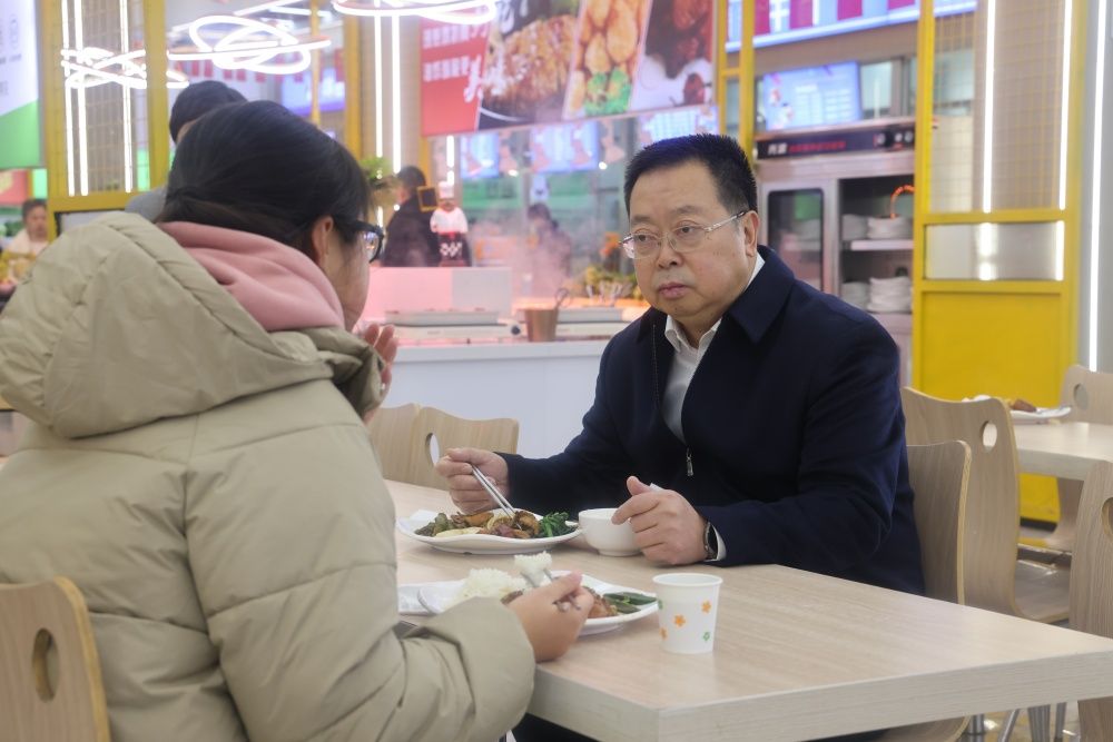 “还有几门课要考?”“大几了?”“哪个学院的?”“考的哪个学校的研究生?”在食堂自习区,刘校长仔细询问正在学习的学子们,并鼓励同学们期末考试考出好成绩。食堂不仅为同学们带来了温暖温馨的备考环境,还有免费饮用热水、粥、姜糖水、用电插口等,从书中走出就可以直奔心仪的“饭菜窗口”,体验心头与胃口的双重满足,同学们反响良好,纷纷点赞。