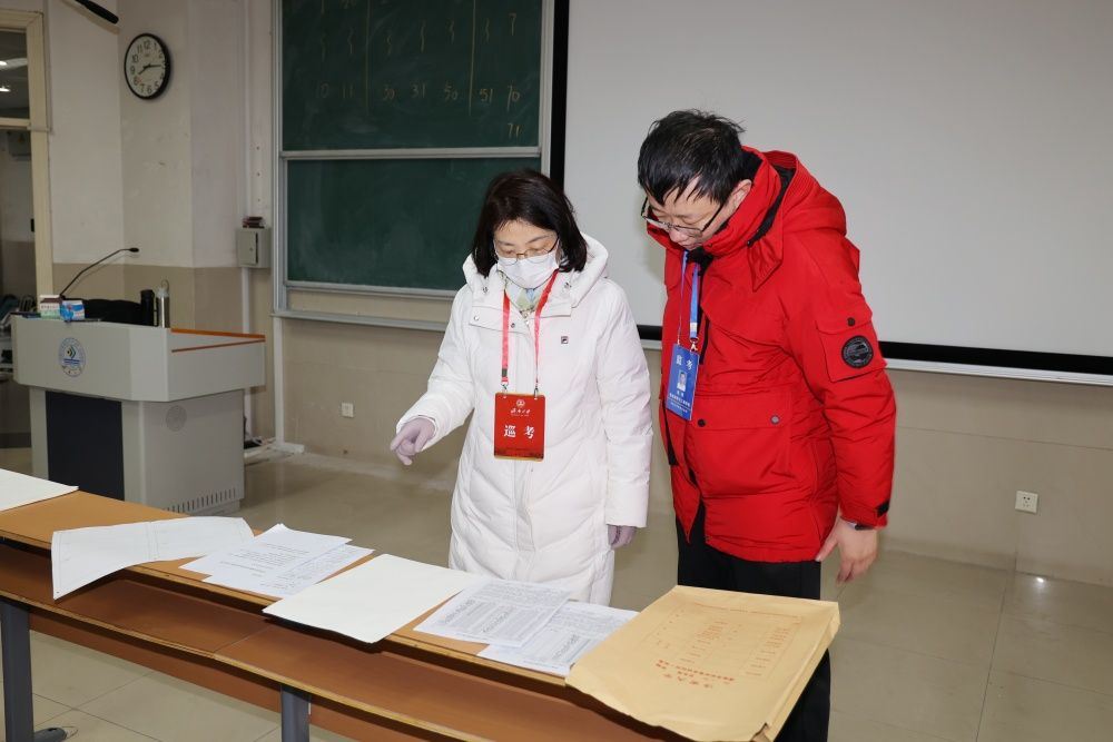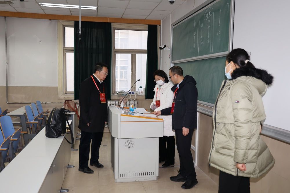 校领导仔细询问了考场安排、监考布置、公共课试卷收发等考试组织情况,重点检查了考风考纪、考场环境和监考教师履责等情况,并与监考教师就试卷规范、缺考情况、考试秩序等方面进行了交流。