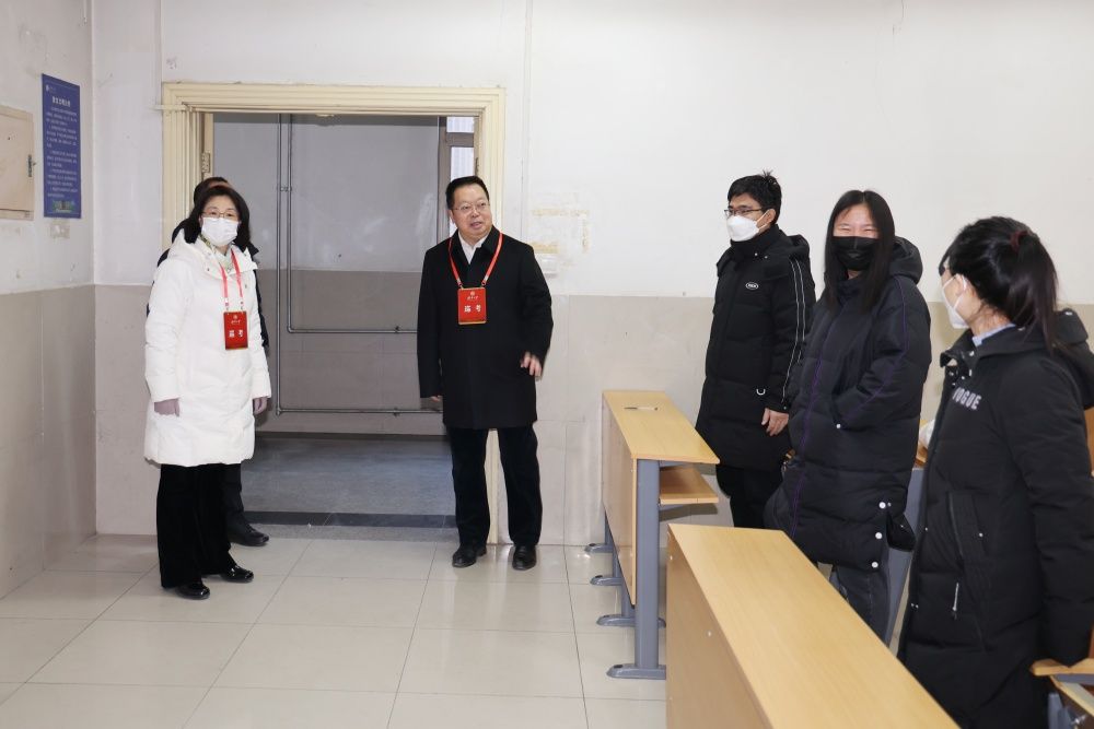 1月2日,永利2023-2024学年第一学期期末考试正式拉开序幕,学校党委副书记、校长刘宗明,党委常委、副校长王霞,教务处负责同志深入期末考试现场,了解考场环境、考试组织、监考人员履行监考职责和考风考纪等情况。