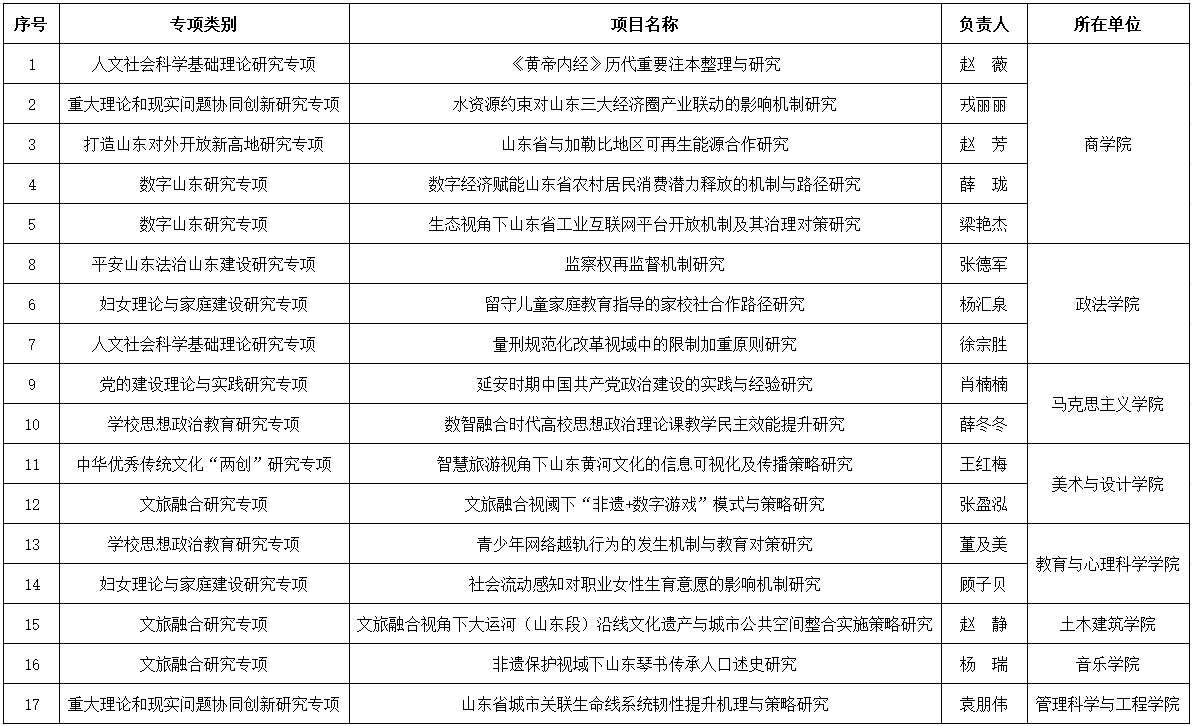 近日,2023年度山东省社科规划研究专项评审结果正式公布,永利申报的17项课题获得立项,立项数量排名省属高校第2位。